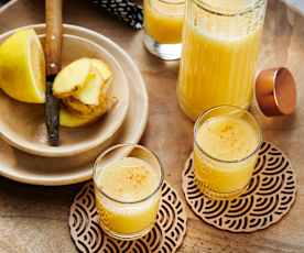 Ingwer Orangensaft Apfelsaft Zitronensaft Honig und Kurkuma in den Mixtopf geben 30 Sek. Aus nur drei Zutaten Ingwer. Bitte nicht mehr als ein Glas täglich trinken.